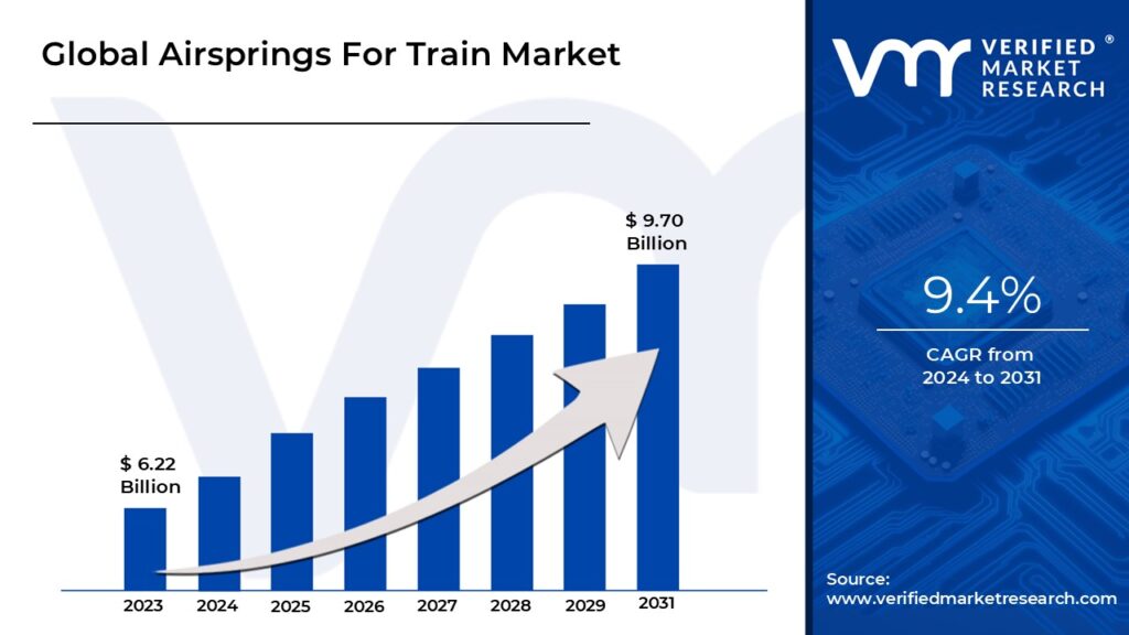열차 시장 규모의 에어 스프링은 2023 년에 6.22 억 달러에 달했으며 2031 년까지 9.70 억 달러...
