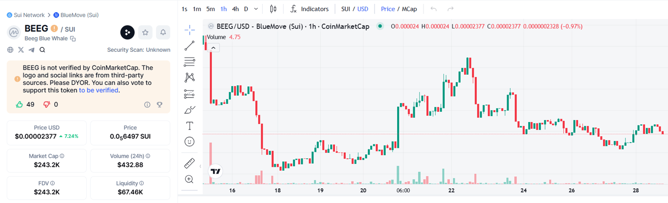 3. Low Market Cap Speculation: At under $250K in market capitalization, BEEG is highly sensitive to new capital inflows. This makes it an attractive, albeit risky, target for speculative traders hunting for quick gains.